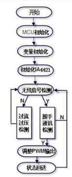 燈光控制部分軟件組成框架: 4.1 MCU初始化函數(shù):包括MCU定時(shí)器的設(shè)置、PWM設(shè)定、中斷設(shè)置和各個(gè)I/O口的輸入、輸出設(shè)置等等。 4.2 IA4421初始化:對(duì)IA4421各個(gè)寄存器進(jìn)行設(shè)定,包括頻率、發(fā)送速率、發(fā)送功率、頻偏等設(shè)置。 4.3主循環(huán)程序:主要包括無線信號(hào)的檢測(cè)和工作電流電壓的檢測(cè)。 主循環(huán)程序是軟件的基本控制部分,為一個(gè)無限循環(huán)程序,通過這一系列的管理函數(shù),不斷的檢測(cè)事件的發(fā)生并執(zhí)行相應(yīng)的功能操作。包含許多子程序,諸如:Check if it’s time to execute events(定時(shí)器時(shí)間事件處理)、通信握手識(shí)別、地址識(shí)別、PWM輸出處理、電流電壓采樣處理、電源管理等等。
